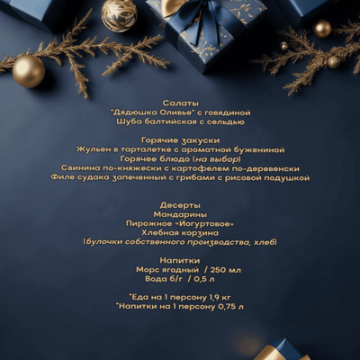 *По желанию /за доп. плату/ Новогодний банкет в отеле «Балтика». 11500 руб./взрослый, 8000 ребенок (3-14 лет включительно) вместе с развлекательной программой.